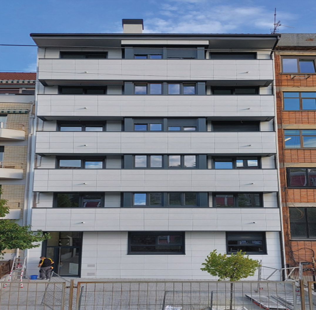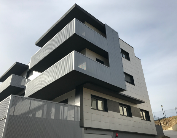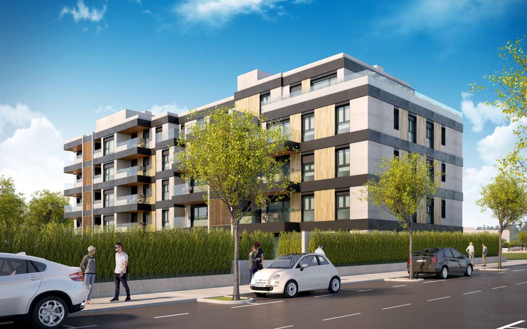 El edificio presenta una imagen contemporánea, con fachada ventilada cerámica y cubierta a dos aguas, y ha sido diseñado por el estudio de arquitectura AREA, ofreciendo una solución moderna y funcional pensada para familias, parejas jóvenes y residentes que buscan calidad de vida en un entorno bien comunicado.